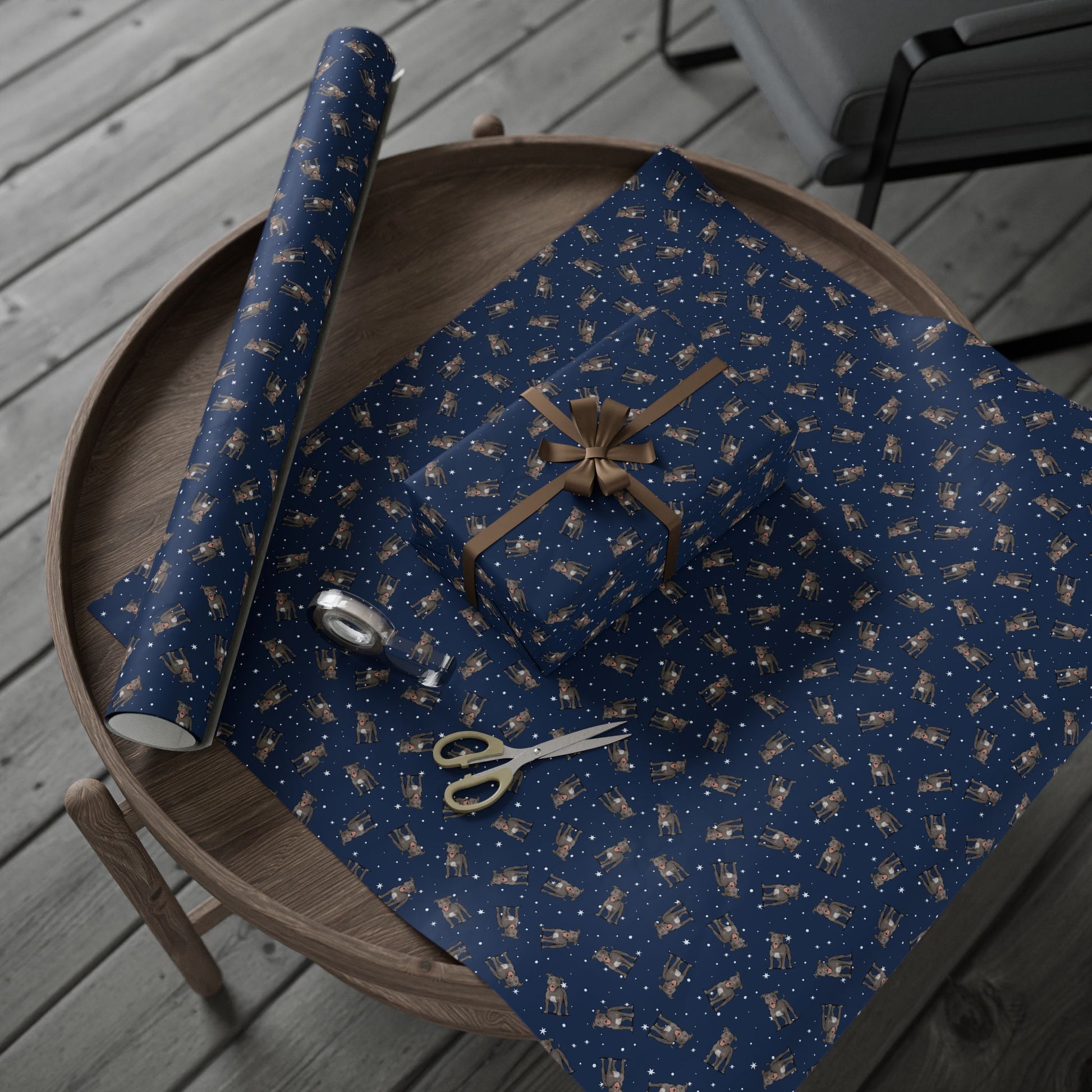Pitbull Wrapping Paper - Navy Blue Gift Wrap Papers, Gray Pit Bull Terrier Dog Owner Gifting Supplies, Pittie Dogs Pattern