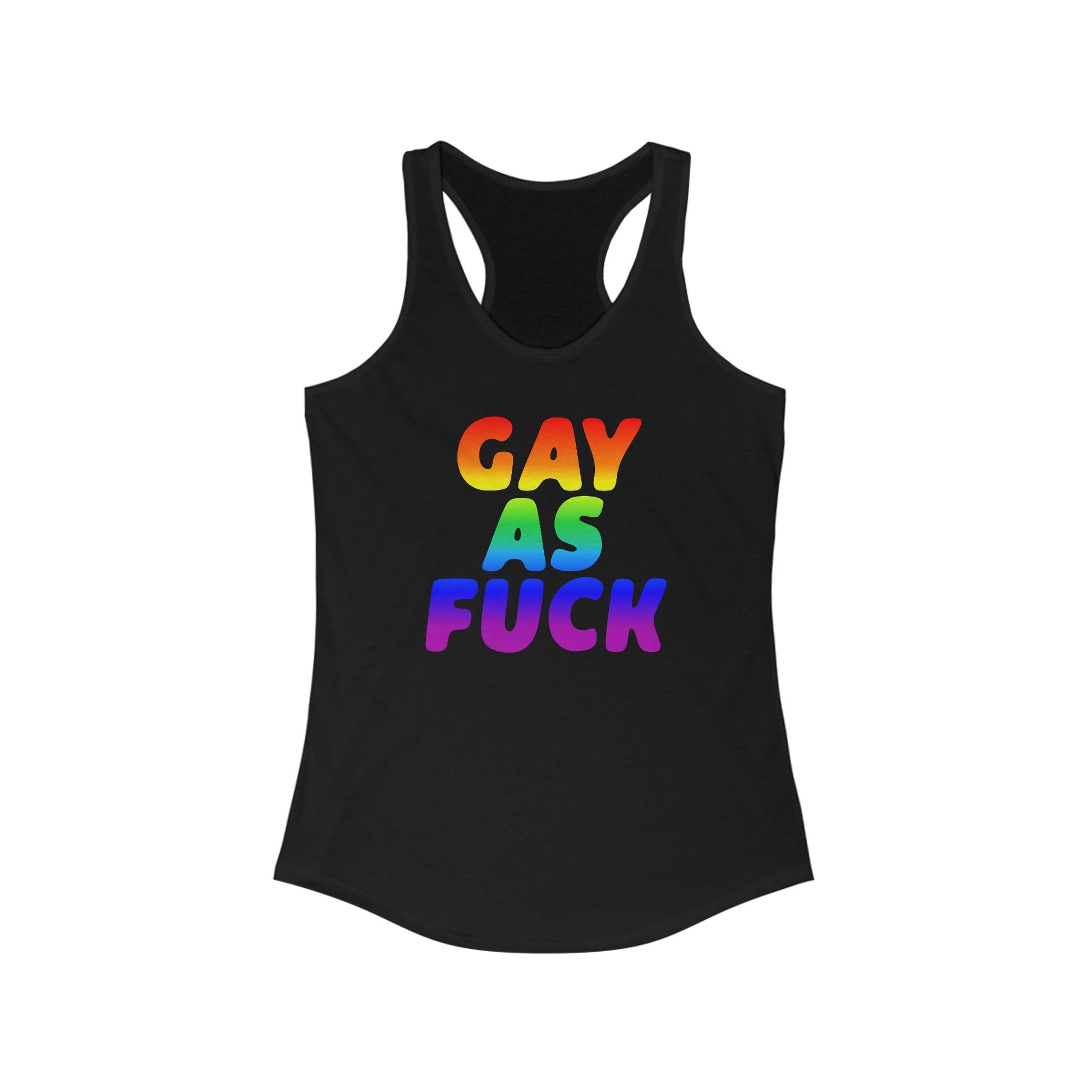 Pride Racerback Tank Top - Gay As Fuck, LGBTQIA Pride Festival Apparel, Lesbian Summer Outfit, Gift for Queer Friends