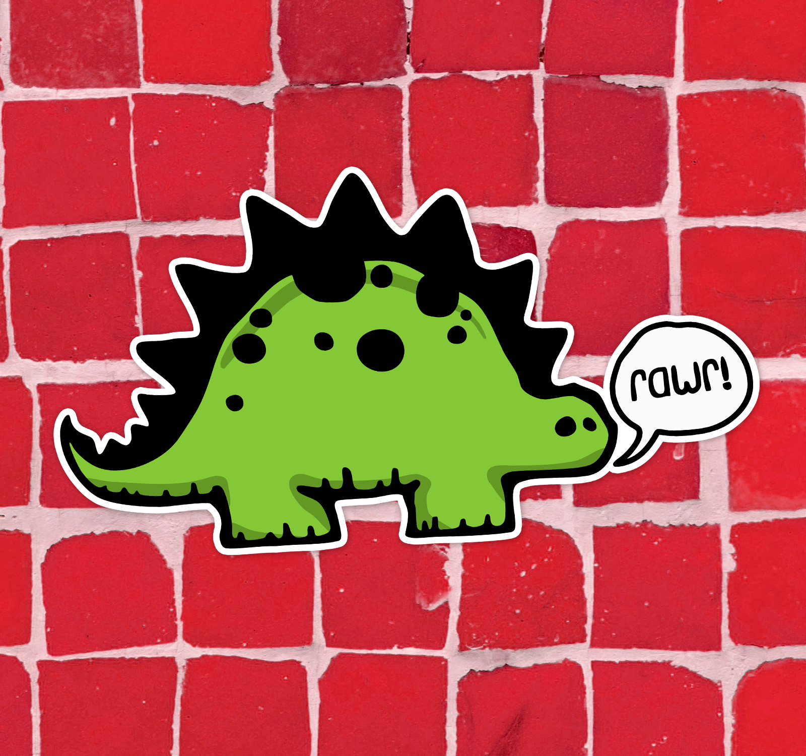 Rawr! Dino Dinosaur Sticker - Waterproof, Fade-Resistant Stegosaurus Green Dinosaurs Decal Stickers