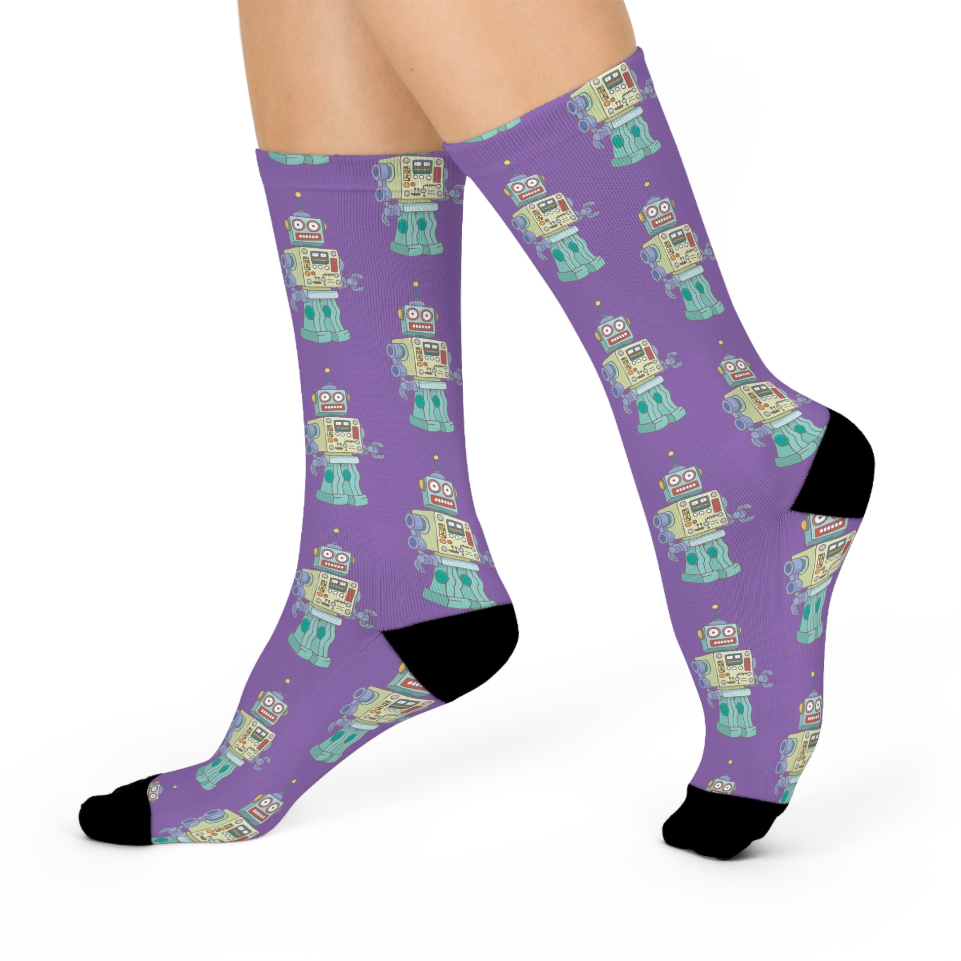 Robot Purple Cushioned Crew Socks with Robot Design Mens Womens Socks, Fun Novelty Footwear