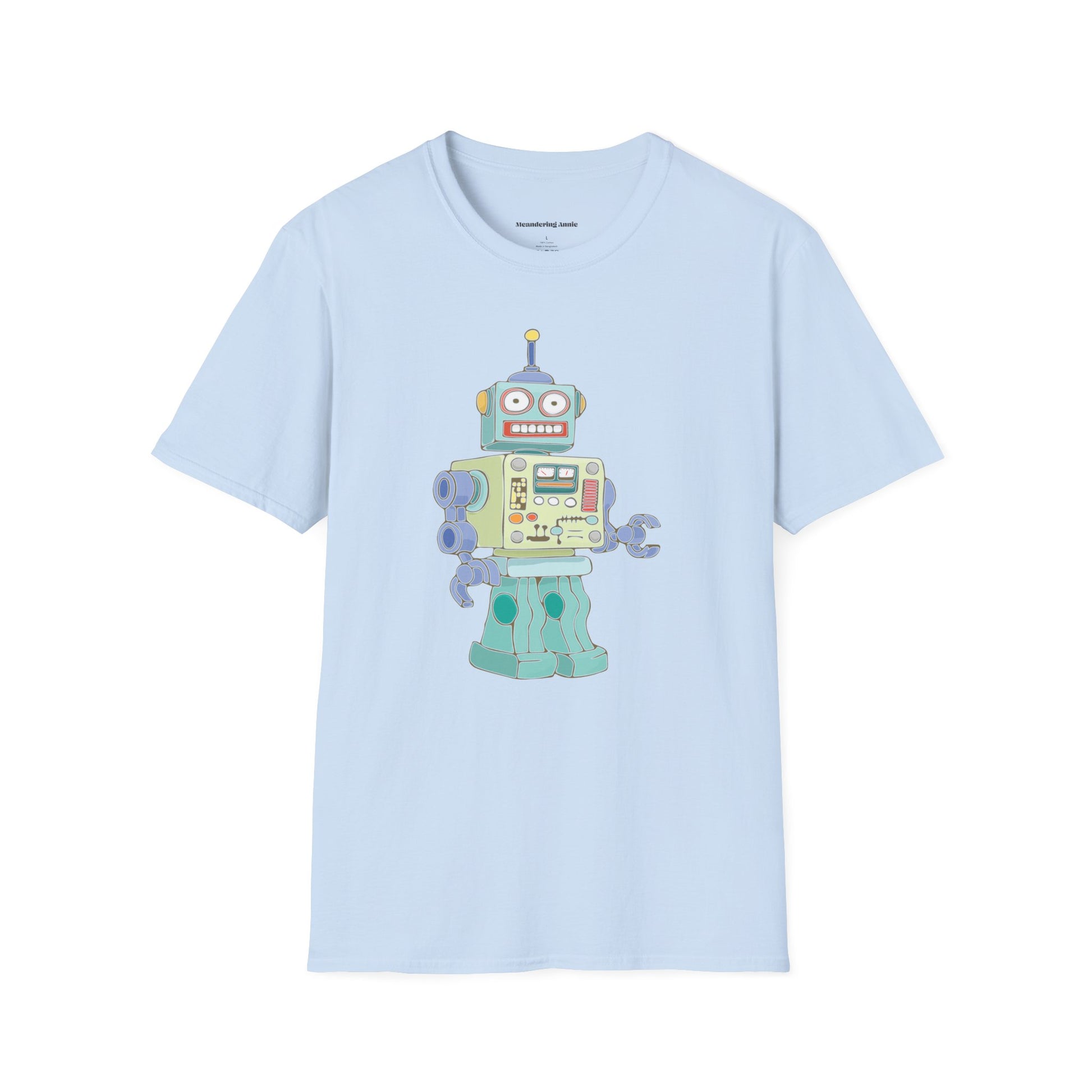 Retro Robot T-shirt Unisex Mens Womens Tee with Fun Colorful Robots Design, Cotton Short Sleeve Top