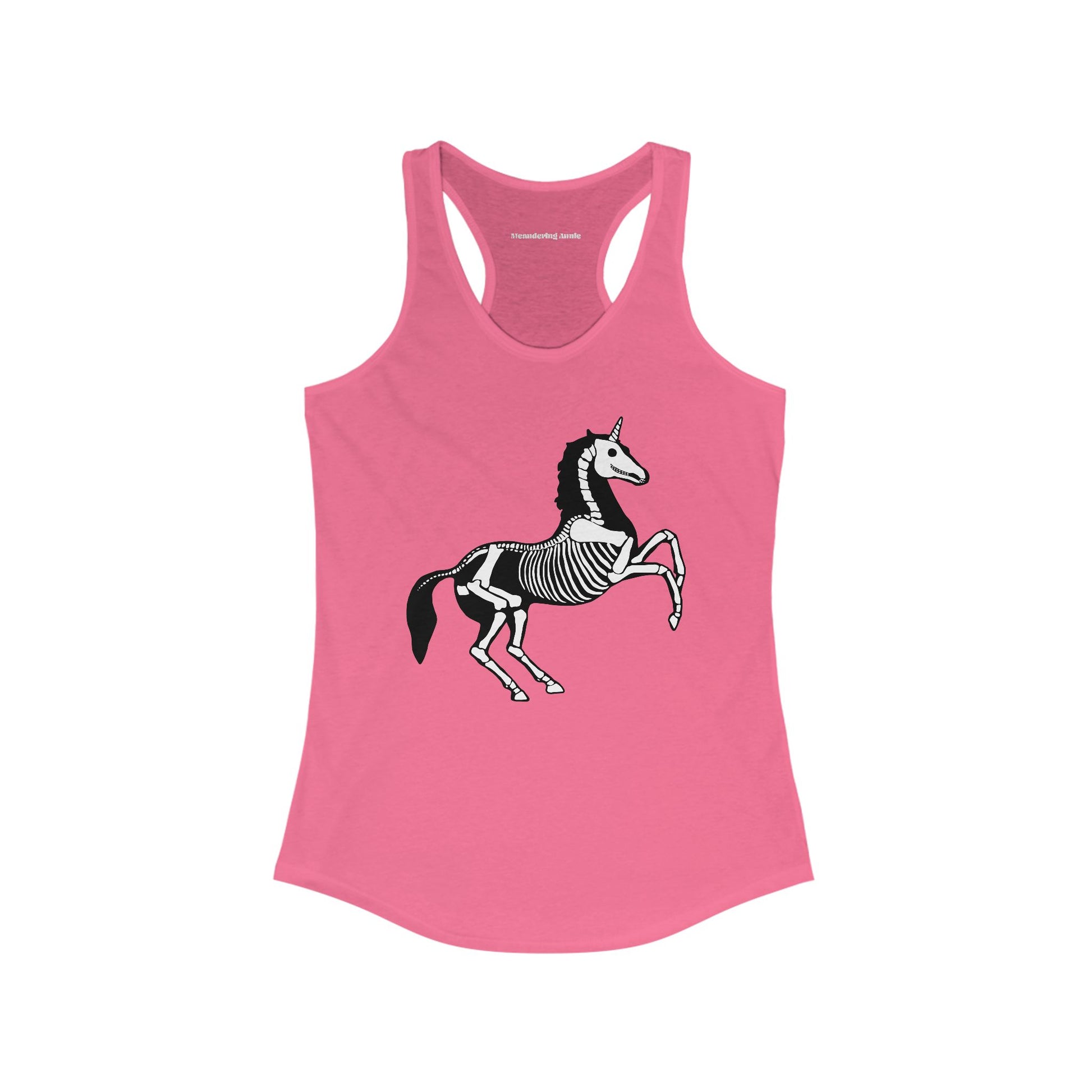 Women's Racerback Tank Top with Halloween Gothic Unicorn Skeleton Print - perfect outfit to wear in October for spooky season. Or a fun gift for a goth friend!