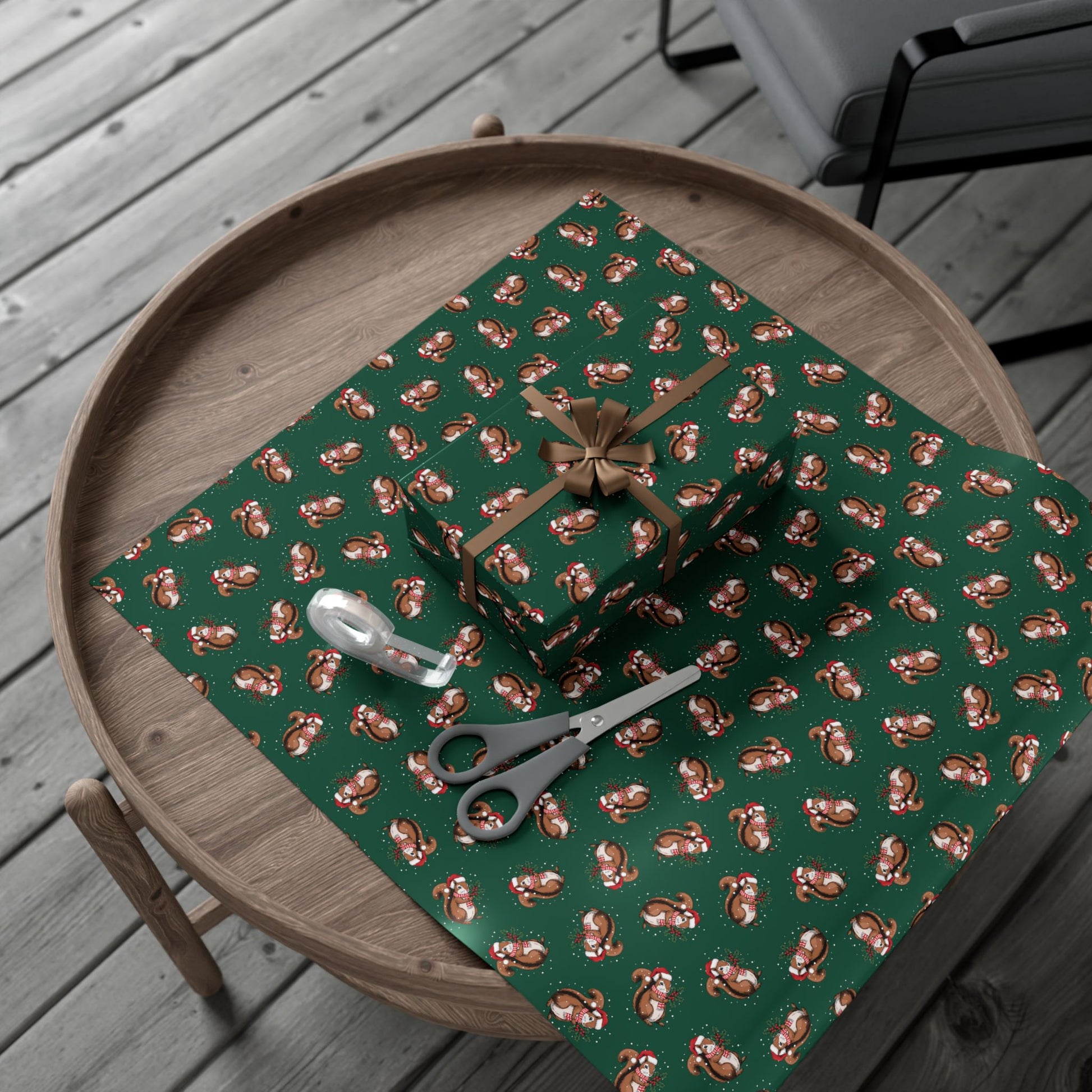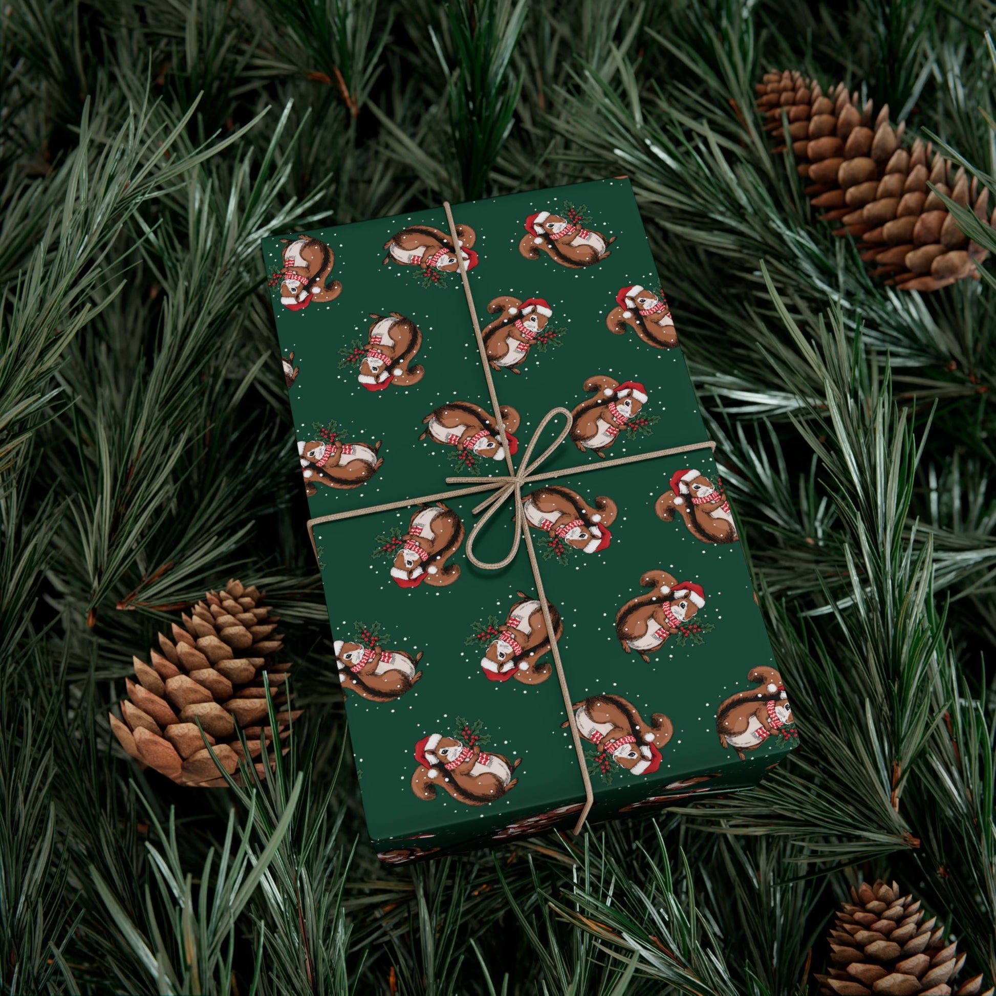 Festive green holiday Christmas wrapping paper featuring a cute squirrel pattern print, perfect for adding a touch of whimsy and cheer to your xmas gift-giving. Satin finish squirrel gift wrap is ideal for those who love nature-inspired designs and want to create a festive atmosphere during the holiday season. Relevant for Christmas, winter celebrations, and holiday gift-giving occasions. Product features - Satin finish wrapping paper