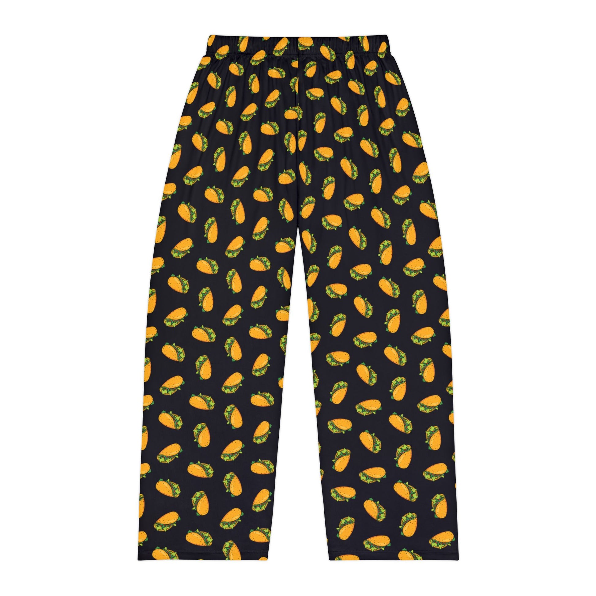 Taco Pattern Pajama Pants, Fun Novelty Tacos Pattern Black Pj Bottoms, Silly Mexican Food Print Loungewear Sleepwear Pajamas
