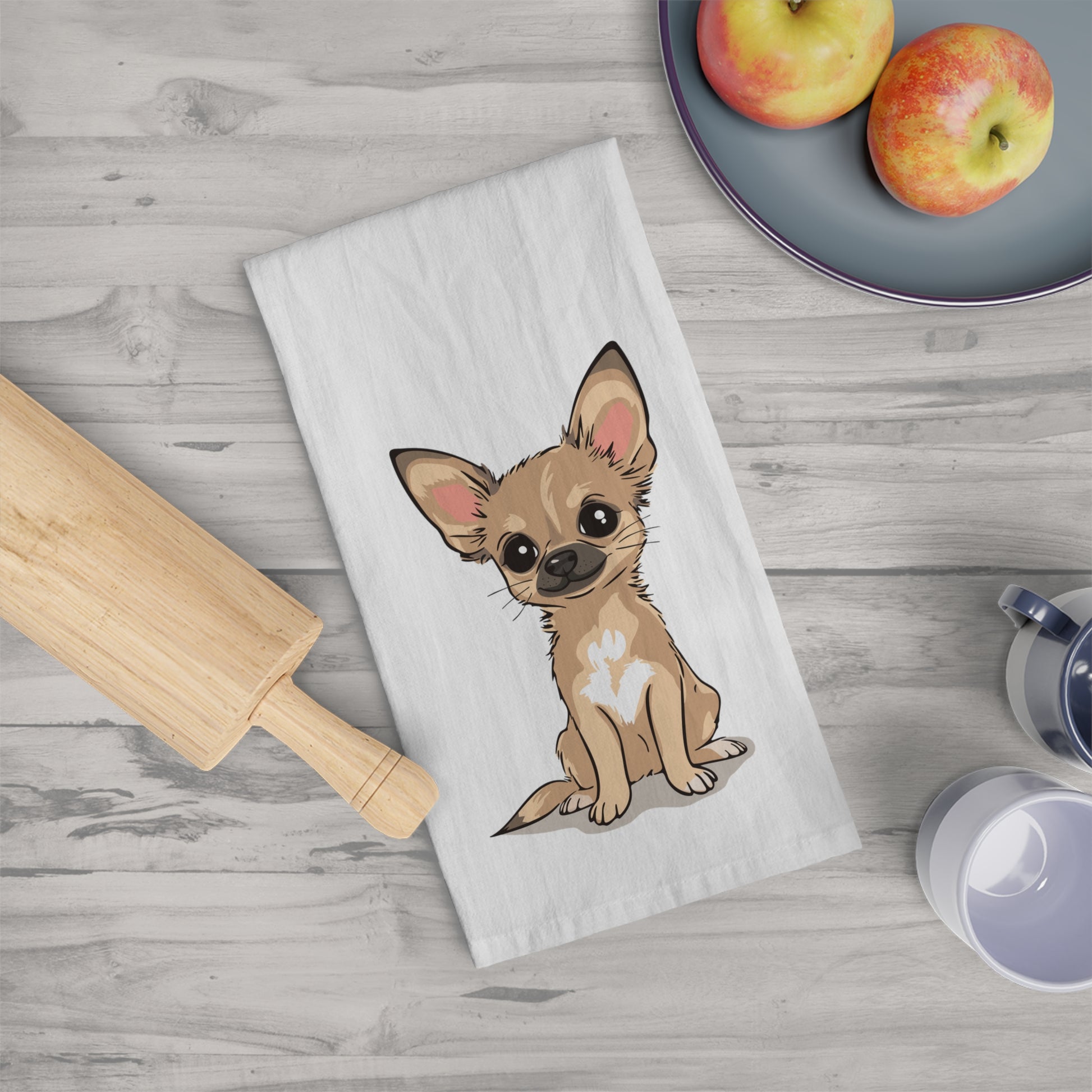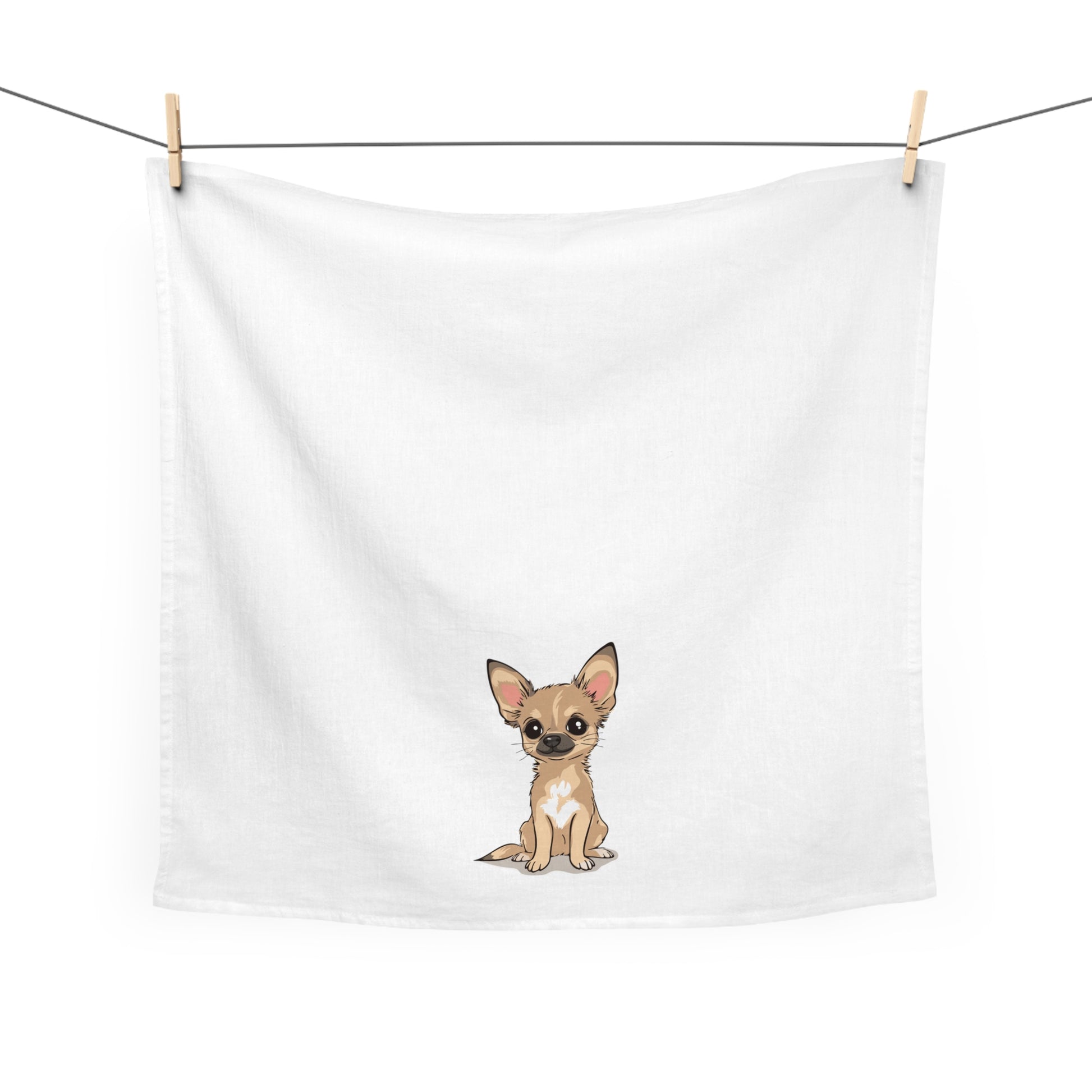 Tan Chihuahua Puppy Dog Kitchen Tea Towel, Chihuahuas Pet Owners Gift, Hand Dish Towels Home Decor