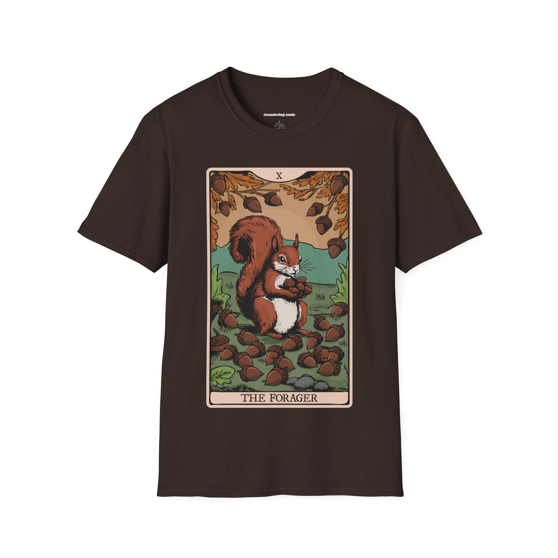 The Forager Squirrel Tarot Card T-shirt Softstyle Tee with Nut Foraging Squirrel Tarot Card Print