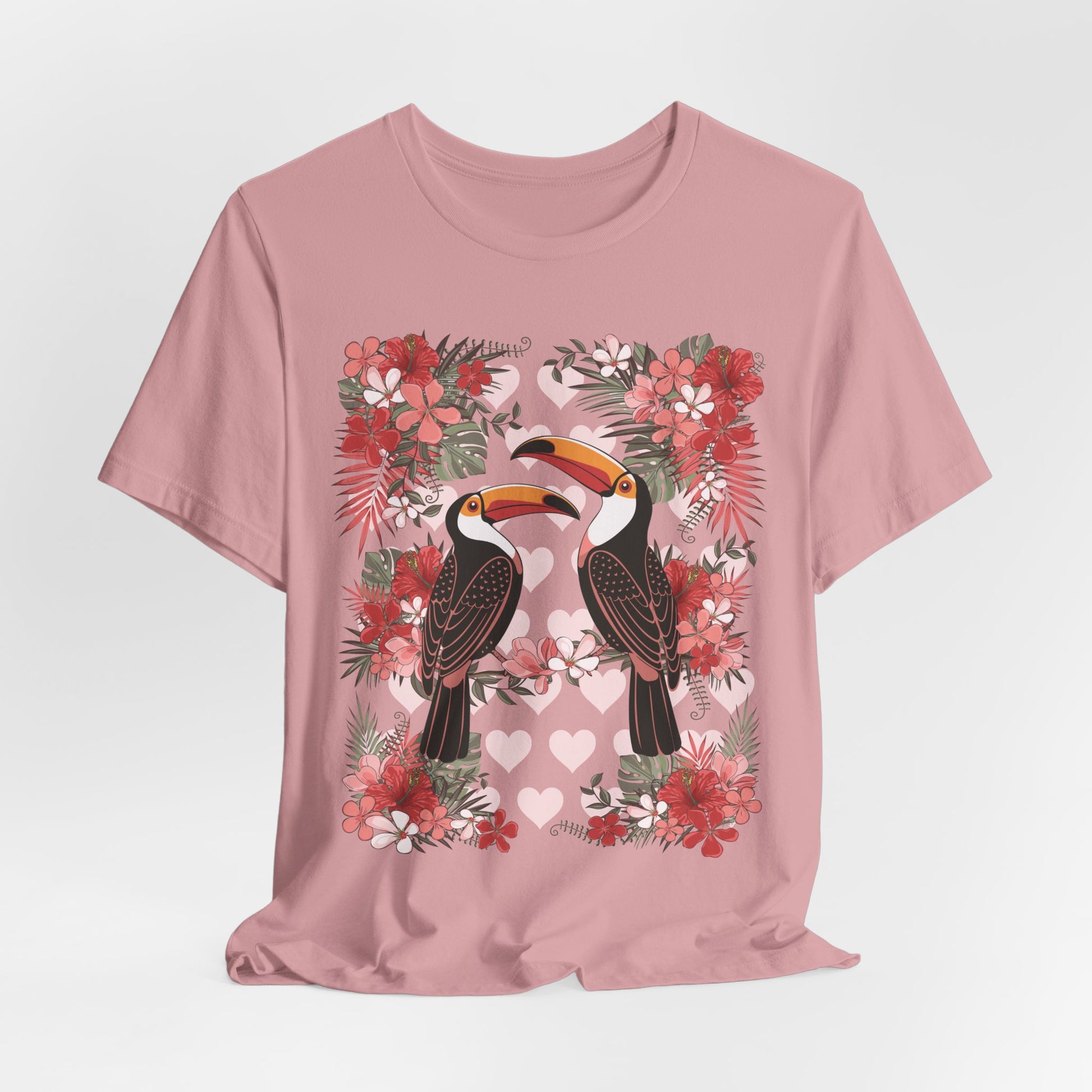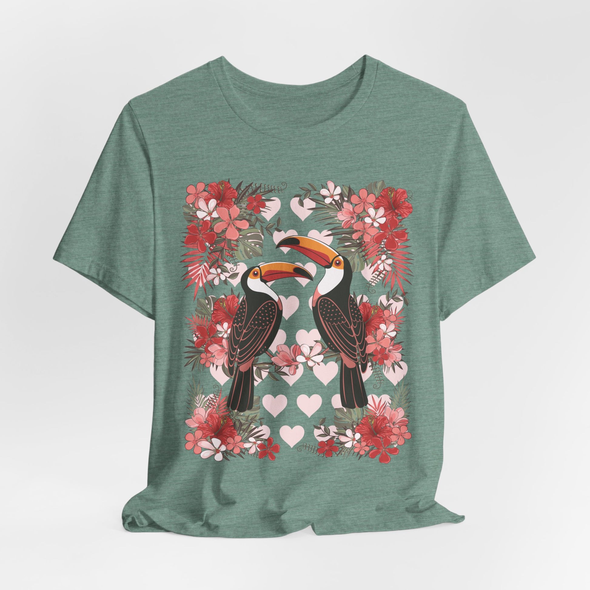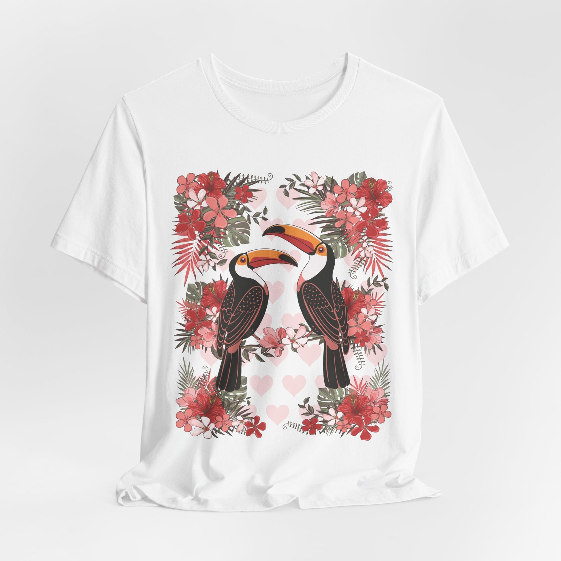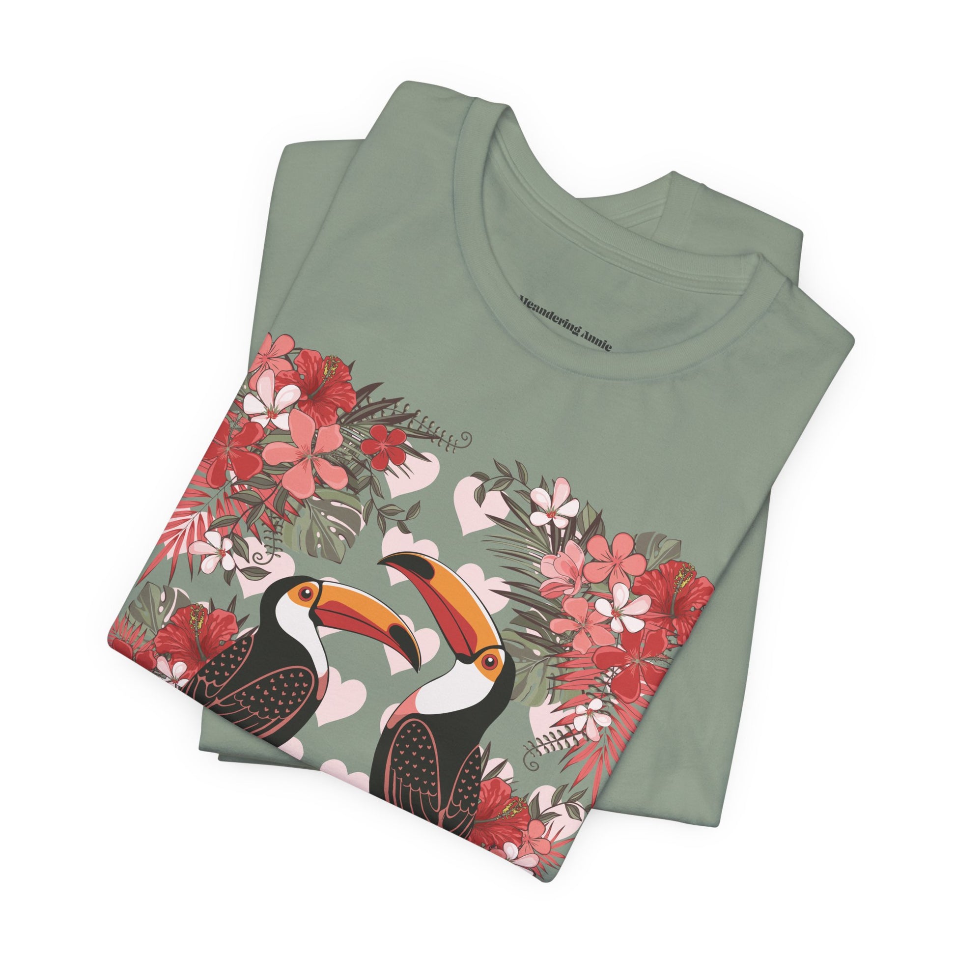 Toucan Tropical Love Birds T-shirt, Casual Summer Shirt, Gift for Bird Lovers, Vacation Wear, Floral Nature Inspired Tee