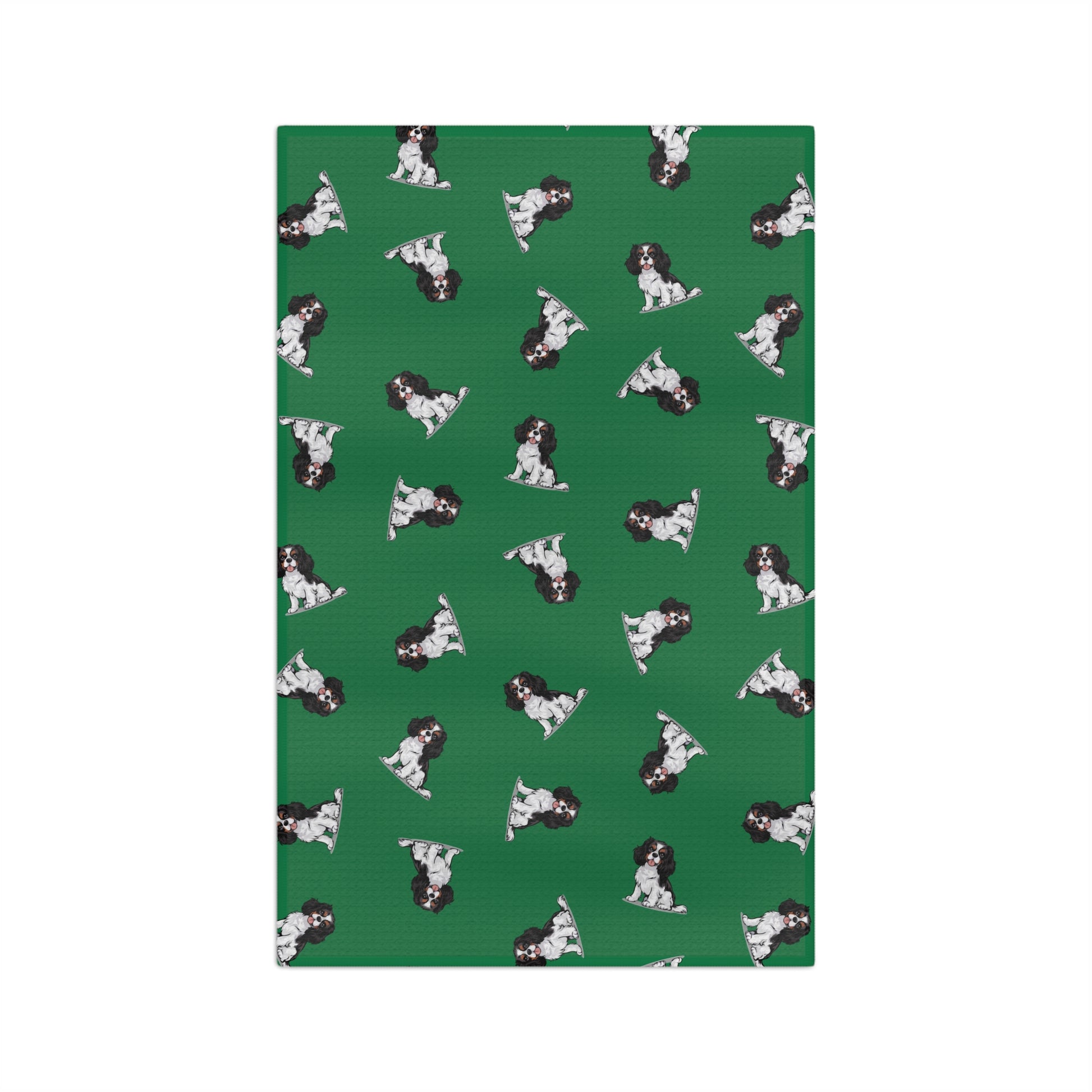 These Tri-color black, brown, and white Cavalier King Charles Spaniel Dog pattern microfiber kitchen hand tea towels get the job done when it comes to cleaning or pure kitchen aesthetics. They're made from a composition of 85% micro-polyester and 15% polyamide, making them both durable and quick to dry. They come in one size that's perfect for kitchens of any scale. Perfect gift for a dog lover or a memorial for a beloved furry friend.