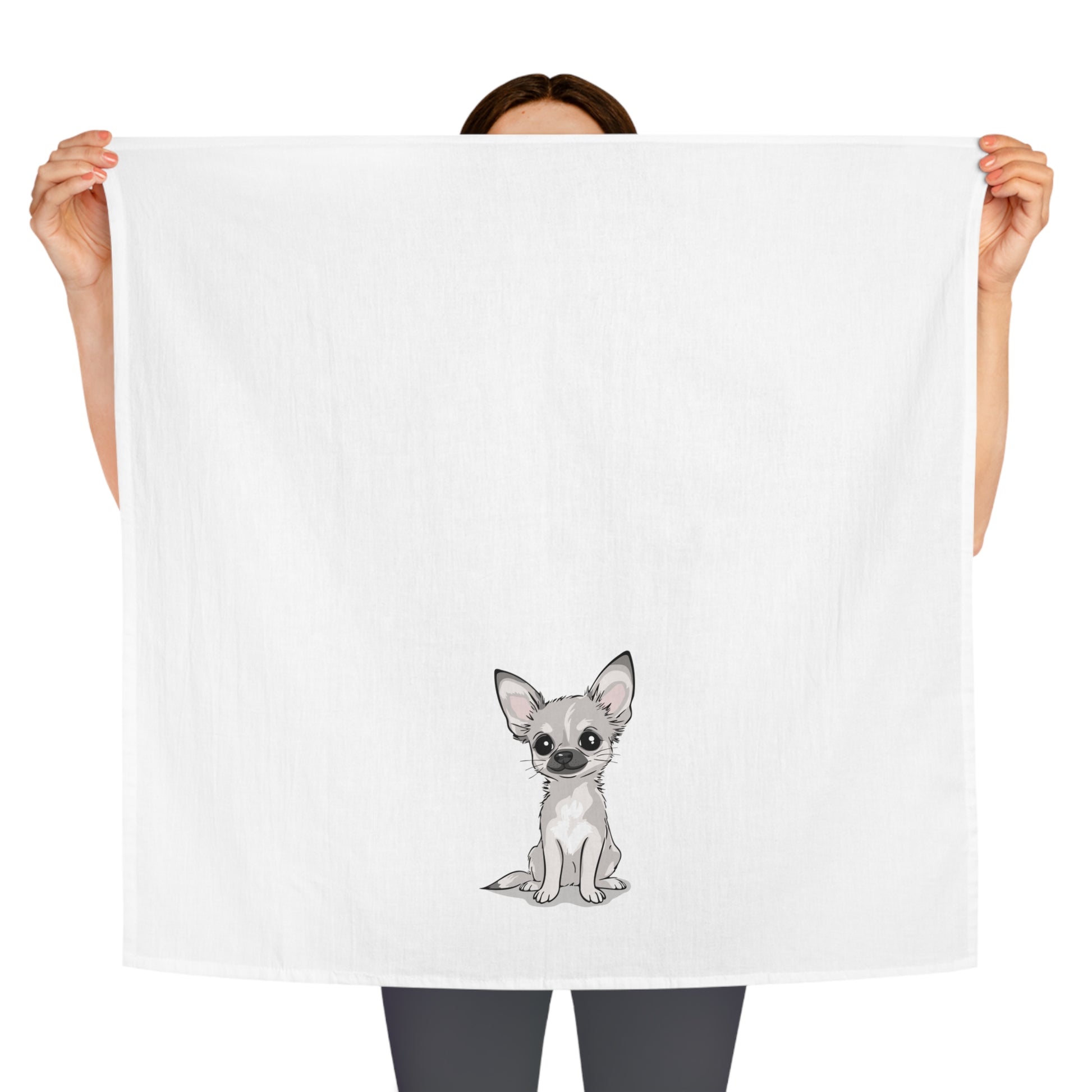 Give a unique keepsake gift to a Chihuahua Dog owner with this cute kitchen tea towel. The 100% cotton hand towel features an adorable image of a White Short Coat Chihuahua. Elevate your kitchen aesthetics with this charming Chihuahuas tea towel, beautifully designed for dog lovers. Featuring an adorable illustration of a Chihuahua, this piece blends functionality with a delightful touch of whimsy. It's perfect for drying dishes, wiping hands, or simply adding a decorative flair to your cooking space. The towel encapsulates a warm, homey vibe, making it an ideal gift for pet owners and a lovely addition to any home during gatherings, holidays, or cozy evenings. Relevant for celebrations such as dog-themed parties, housewarming events, and as a thoughtful present for birthdays or special occasions.
