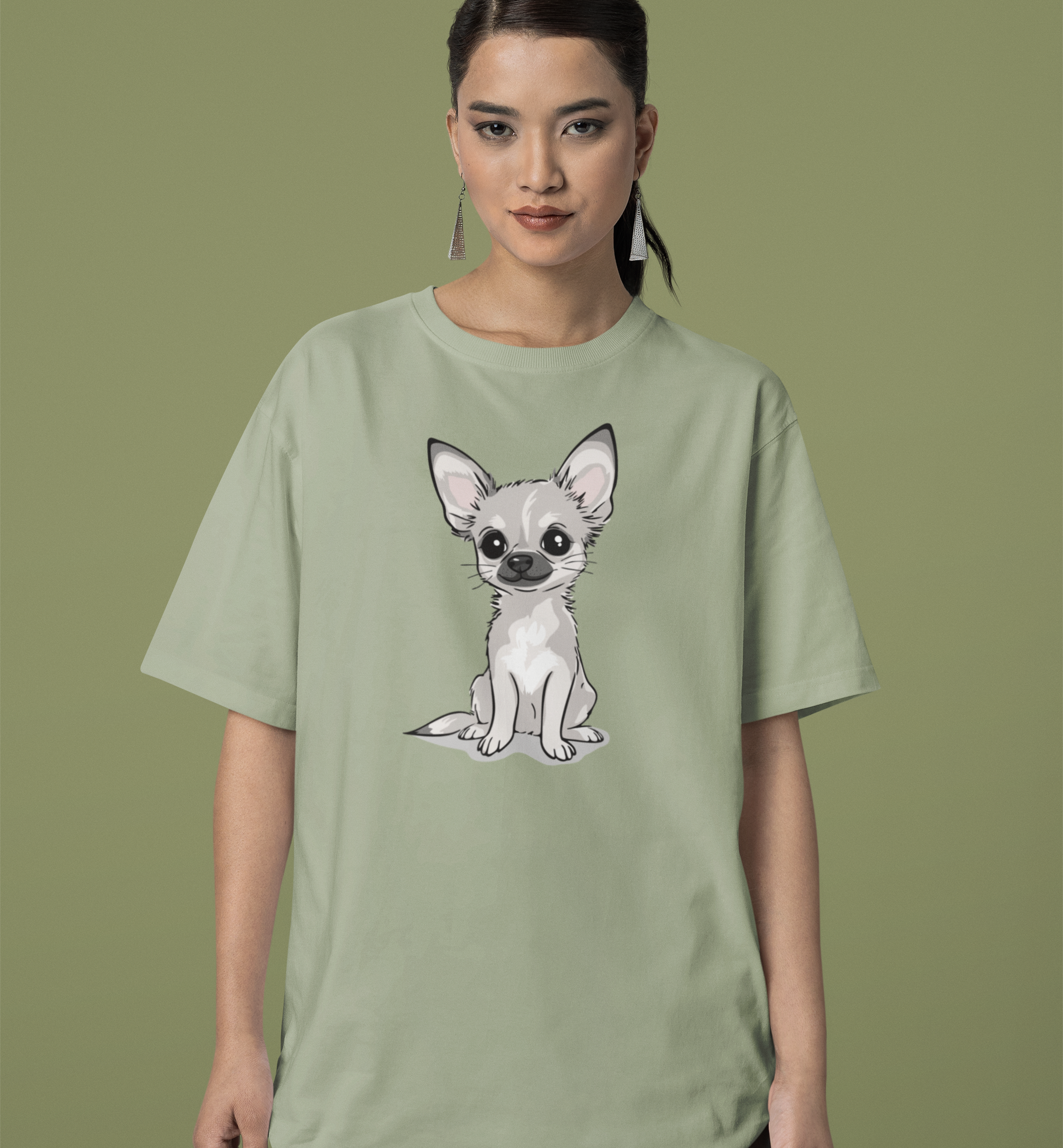 White Chihuahua Puppy Dog T-Shirt - Mens Womens Unisex Cotton Chihuahuas Dogs Pet Short Sleeve Tee Puppies Design Shirts