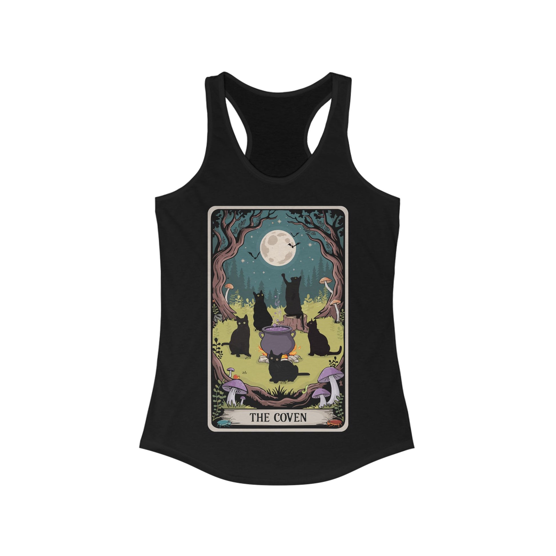 Witchy Black Cats Racerback Tank Top, The Coven Women's Sleeveless Shirt, Halloween Apparel, Spooky Fall Gifts for Witches, Goth Occult Tops